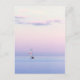 Soft and dreamy pastel purples and blues make up this seascape image. A solo sail boat sailing on gentle blue waters. A misty pink sky with some soft clouds above. Calming and tranquil image.
