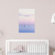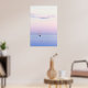 Soft and dreamy pastel purples and blues make up this seascape image. A solo sail boat sailing on gentle blue waters. A misty pink sky with some soft clouds floating above. Calming and tranquil image.