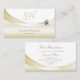 Pastel Silk Gold White with Monogram and Diamond Business Card
