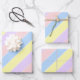 Delightful patterns of stripes featuring spring pastel colours of baby blue, yellow, lavender and pink.