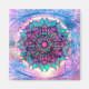 A pretty aqua and pink snowflake mandala against an abstract pastel texture background.