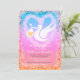 A tastefully rendered Stork in flight with baby bundle of joy is complimented by heart shaped clouds set against a pastel buff textured, blue rose tinged sky. All bordered by multi coloured leaves in this elegant fully customisable design. Complete with matching illustration on invitation’s back.