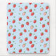 A playful pattern filled with hand-painted strawberries, tiny white flowers, and green leaves on a light blue pastel background. Great for spring-themed products or cute fabric prints.