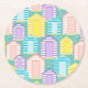 Pastel Striped Beach Hut Patterned Coastal Round Paper Coaster