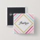 Fun and colourful personalised in button featuring pink, blush and blue watercolor stripes with faux gold glitter accent. This cute pin button will be perfect as a personalised gift.