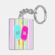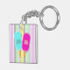 Cute and quirky keychain to get you into the holiday mood with ice lollies to personalise with your initials and a stripey background in ice cream colours.