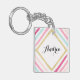 Pastel Stripes Gold Glitter Personalised Keychain
