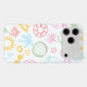 A pastel summer doodle phone case featuring cute beach icons like palm trees, sunglasses, watermelon slices, coconuts, sun shapes, tropical drinks, and summer accessories in a soft outline style.