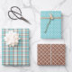 Fun colourful wrapping paper set. With cute gingham plaid tartan stripes and polkadots designs in light teal blue green, coffee caramel brown and white colours. Ornate, funky, modern and whimsical hipster design for the lover of Spring and Easter themes. This original, classy, chic, stylish and perfect gift wrap will put a smile on the faces of friends and family when unwrapping their Spring break holiday presents.
