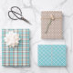 Fun colourful wrapping paper set. With cute gingham plaid tartan stripes and polkadots designs in light teal blue green, coffee caramel brown and white colours. Ornate, funky, modern and whimsical hipster design for the lover of Spring and Easter themes. This original, classy, chic, stylish and perfect gift wrap will put a smile on the faces of friends and family when unwrapping their Spring break holiday presents.
