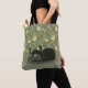 Pastel Teal Floral Art Nouveau Cute Black Cat Tote Bag