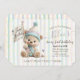 Celebrate a little one's milestone with this charming birthday invitation featuring a pastel-striped background, gold star accents, and an adorable teddy bear in party attire. Whimsical and warm, this design sets the tone for a joyful first birthday celebration filled with games, treats, and festive cheer.