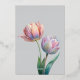 This artwork showcases two exquisite tulips in soft, pastel shades, beautifully capturing their delicate petals and graceful stems. The flowers are rendered in a dreamy palette of pale pinks, gentle purples, light greens, and subtle hints of blue. The translucent quality of the petals, combined with the realistic yet painterly style, creates a sense of ethereal beauty and timeless romance. This floral image would make an elegant addition to wedding invitations, conveying both sophistication and the tender beauty of nature.