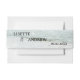 Elegant wedding invitation belly band featuring a painting of a beach in pastel turquoise colours with sparkling lights.