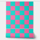 Pastel Turquoise Blue-green And Pink Chequered Wallpaper