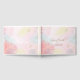 Pretty pastel coloured wedding guest book with a faint watercolor floral design. Gold tone graphic text reads Guest Book. Personalise the custom text for your wedding day.