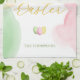 Pastel Watercolor Splashes And Chick Happy Easter Tea Towel