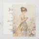 Soft Pastel Watercolor Effect Young Woman in Golden and Gray Strapless Gown Surrounded by Flowers Sweet Sixteen Invitation Design.