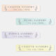 A soft pastel watercolor trio of iron on name labels featuring hand drawn white laurel branches with name and phone number or classroom. A great way to keep your kids and your own personal items from getting lost. Easily label personal items like school uniforms, shoes, jackets and coats, blankets and more.