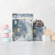 Explore the magic of Christmas with this enchanting watercolor pattern, blending delicate pink and pastel tones, adorned with a snowy landscape and serene blue and white accents.