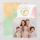 Celebrate Easter with this delightful personalizable card featuring Destei’s watercolor willow wreath decorated with pastel Easter eggs. A yellow chick sits in the center, while “Happy Easter” curves above in green lettering. Below, a personalizable area lets you add a name and year in brown font. A yellow line separates the top design from a space for your own photo, creating a perfect blend of artwork and personalization. Watercolor splashes in orange, green and pink decorate the edges on the front, while the back is fully covered in playful splashes for a vibrant, festive touch.