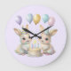 Pastel Whimsical Bunny Twins Birthday wall clock