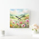 Pastel Wildflower Meadow Landscape Square Wall Clock
