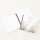This design features a delicate, romantic watercolor illustration of wildflowers in shades of green and pink.