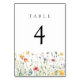 Pastel Wildflower Wedding Table Number