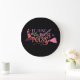 Cute Fun Pastel Witch Hocus Pocus Halloween Hat Broomstick Large Clock, Welcome your guests with this cute spooky funny personalised Halloween doormat. The stylish typography design features "It's just a bunch of Hocus Pocus" wording yellow, purple and pastel pink, orange, start and witch broomstick, witch hat, in black background.