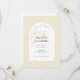 These modern minimalist pastel yellow wedding save the date postcards feature a boho arch, delicate imitation gold floral elements and a contemporarty set of fonts in jet black. Flower detail is repeated at the back alongside optional text. This design is contemporary and chic. Perfect for the stylish and elegant couple.