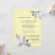 Abstract white gardenia flowers with wispy leaves and whimsical swirls border this beautiful wedding invitation set. Perfect for garden weddings in any season -- simply change the backbround colour for spring, summer, autumn, fall, and winter. Elegant semi-formal vintage text is sure to please the traditional bride, but a splash of trendy styling makes it contemporary enough for modern brides. Simple but stylish elegance at bargain discounts and affordable prices for frugal brides on a budget. Shown with pale light yellow background with grey text. Customise it to change the font colours and styles or the card size. Please contact us if you would like this design modified to match your bridal party colour theme. This easy to use template can also be personalised for any special occasions Please contact us for assistance if you need help to create your own unique one-of-a-kind invitations. CARD SIZE: 5.5 x 7.5 inches -- other sizes, colours, and paper styles available.