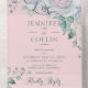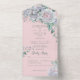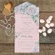 ALSO AVAILABLE WITH A QR CODE TO SCAN IN THE RSVP AREA. This design has beautiful white floral blooms with periwinkle buds, surrounded by soft greenery. The floral design is placed on a soft pink background. Personalised All-In-One invitations are a unique combination of both a beautifully printed custom invitation with an easy to tear off perforated RSVP postcard. And they are so easy to use! You simply fold, then seal the back flap with the three included clear stickers, and mail. And when your guests receive your custom invite, they just tear the perforated RSVP Card off and drop it back in the mail to you!