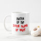This funny text design features the phrase "Pastor by Day Zombie Slayer by Night" and is perfect for any pastor who loves zombies.
