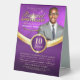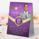 Celebrate your Pastoral Anniversary with this elegant church event table tent sign featuring purple bokeh & shiny gold tones. Customise to your liking.