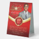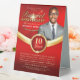 Celebrate your Pastoral Anniversary with this elegant church event table tent sign featuring red bokeh & shiny gold tones. Customise to your liking.