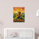 This imaginative artwork showcases a bear, a true "Pastoral Pickin'" performer with a firefighter helmet and sunglasses, captivatingly playing an acoustic guitar in a field of wildflowers. A sun-kissed valley and rolling hills form the picturesque backdrop, with a jar of honey nearby. The vibrant, textured impasto creates a powerful and whimsical atmosphere, making this "Love My Honey" scene truly unforgettable.