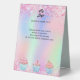 Personalise and add your business logo, name. Blush pink, purple, rose gold, mint green, holographc bacground decorated with faux glitter dust and cupcakes. Add your text, price list, menu, opening hours.