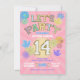 Colourful Patch Letter Birthday Party invitation for an 14 year old with a hippie retro vibe. Other ages available! Features pretty pastel fonts with faux glitter accents and preppy flowers and doves on a sunburst background the the age of the birthday girl! All wording can be changed except the age and the words "Let's party"", but you can delete them. To make more changes go to Personalise this template. On the bottom you’ll see “Want to customise this design even further? Click on the EDIT using Design tool. From there you can change some of the fonts & some colours, move things around or delete what you need.
