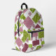 Patchwork brown green polka dots white back printed backpack