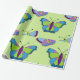 Patchwork Butterfly Pattern on Green Wrapping Paper