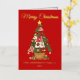 Elegant non-photo holiday card featuring a festive Patchwork Christmas tree adorned with ornaments and surrounded by wrapped presents. Personalise the card by adding a custom greeting, your family name, and the year in gold foil lettering. Add a custom message to the inside of the card or leave blank to write your own. The back of the gold foil Patchwork Christmas tree card features a red background