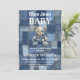 Celebrate the arrival of a little cowboy with this Blue Jean Baby Shower Invitation! This charming design features a patchwork denim teddy bear, perfect for a rustic or western-themed baby shower. The classic blue jean aesthetic adds a trendy and gender-neutral touch, making it ideal for celebrating a baby boy. Customize the details effortlessly to create the perfect invitation for your special event.