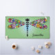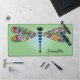 Floral Patchwork Dragonfly Damselfly Design Desk Mat with customisable text and background colour.