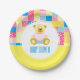 Patchwork Gold Bear, Baby Shower Paper Plate