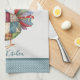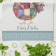 A cute little chicken theme kitchen towel that is personalised with your name. Hen is created in a colourful patchwork patterned design with a tiny polka dot background in blue. See other kitchen decor items in this same design collection.