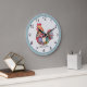 A cute little chicken theme kitchen clock that is personalised with your name. Hen is created in a colourful patchwork patterned design with a tiny polka dot background in blue. Your choice of various styles. See other kitchen decor items in this same design collection.