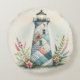 Patchwork Lighthouse Coastal Floral Scene Round Cushion