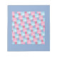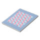 An attractive notepad or jotter, with a cover pattern of patchwork in pink and blue denim colours, from a handpainted watercolour design by Judy Adamson.