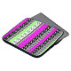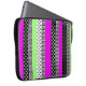Patchwork of black and white and neon stripes with crimson and green fabric